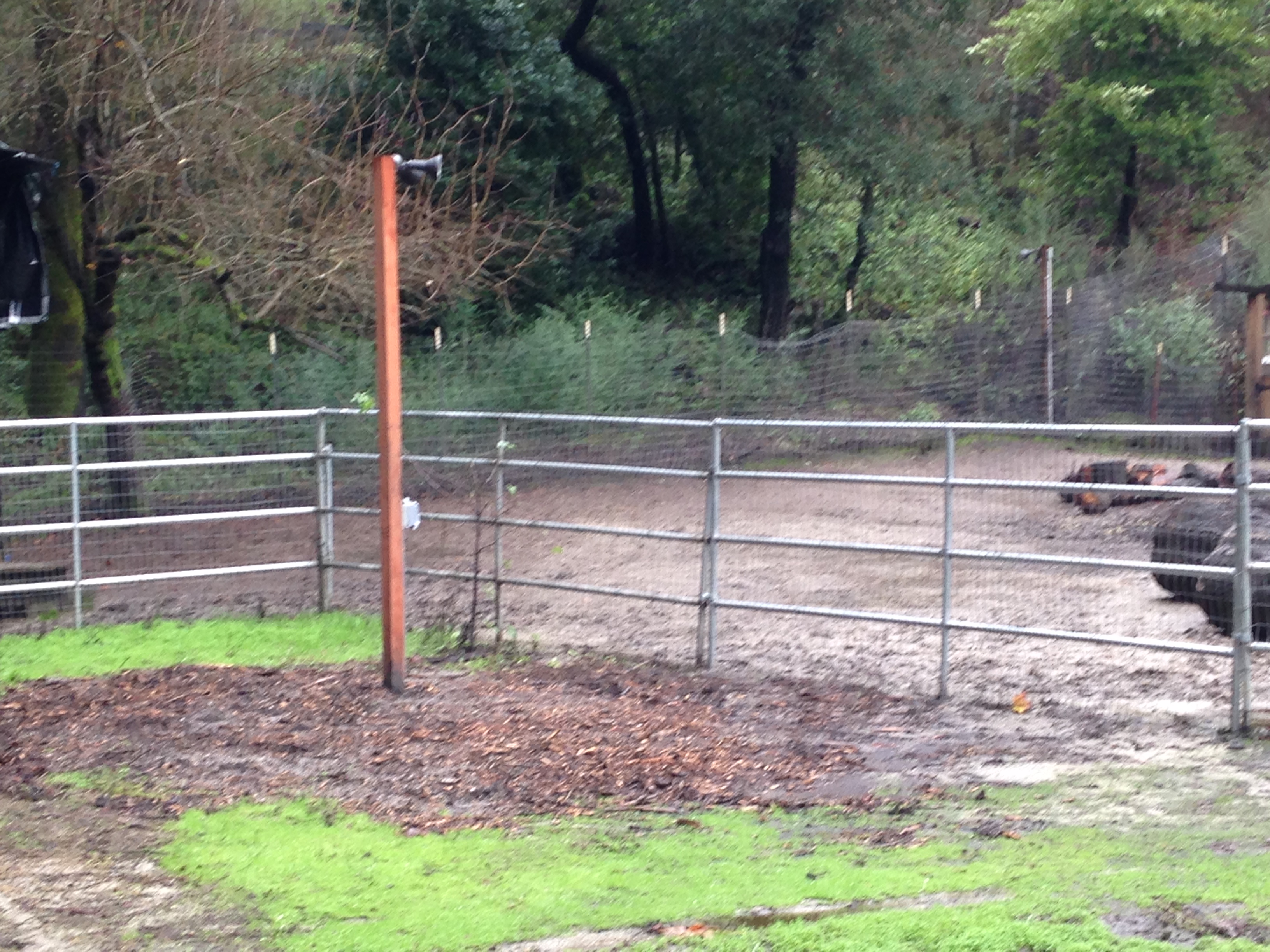 New flood lights and outlet box added to the post set on a timer. Fence fixed!