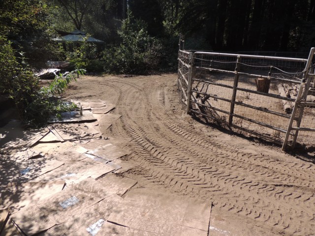 Dirt cleared along the edge of the pipe corral and moved to the driveway where we plan to add a parking pad.