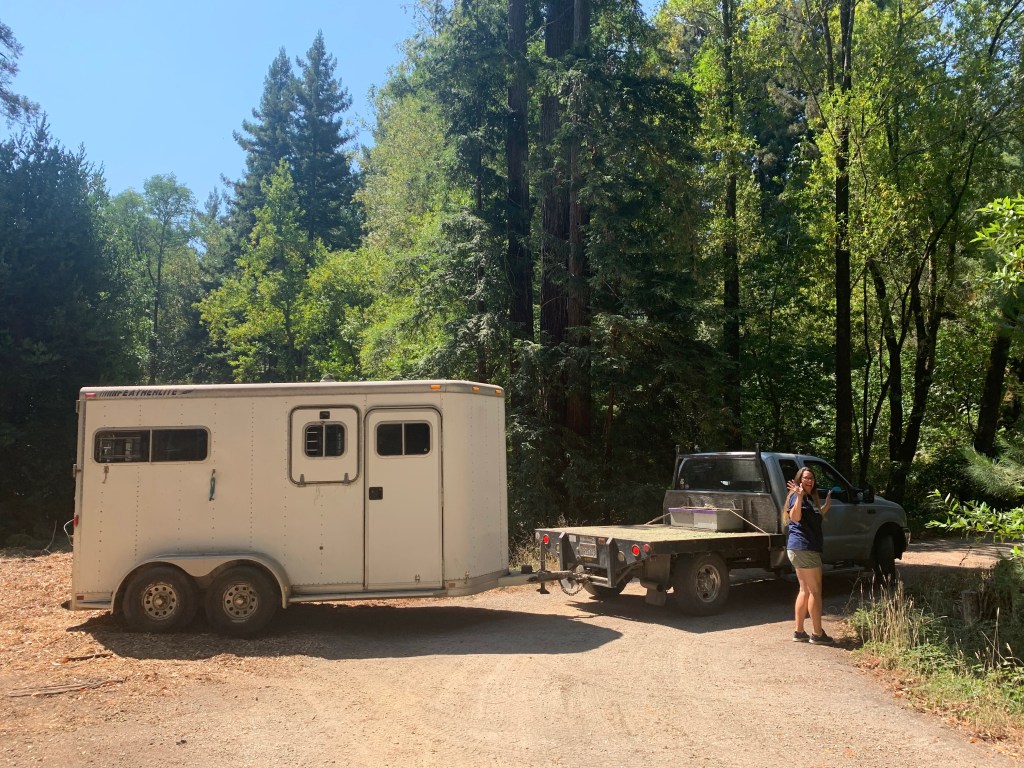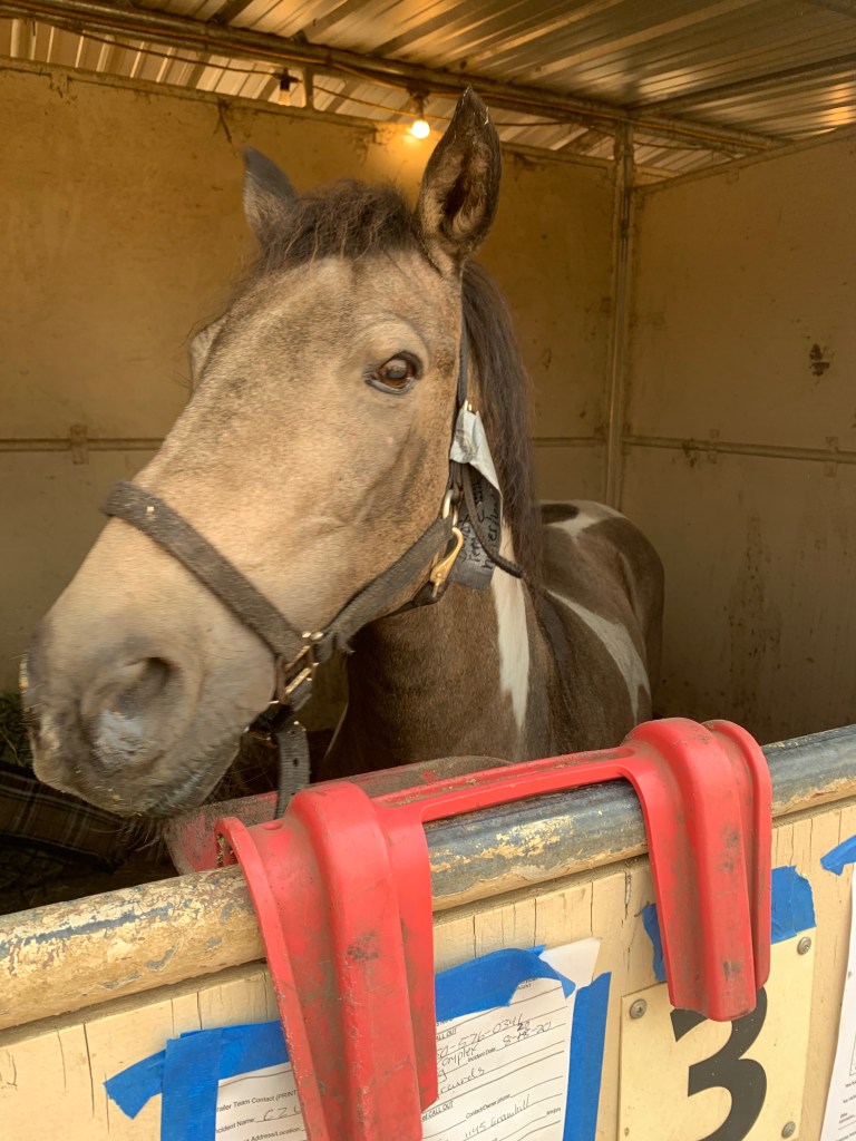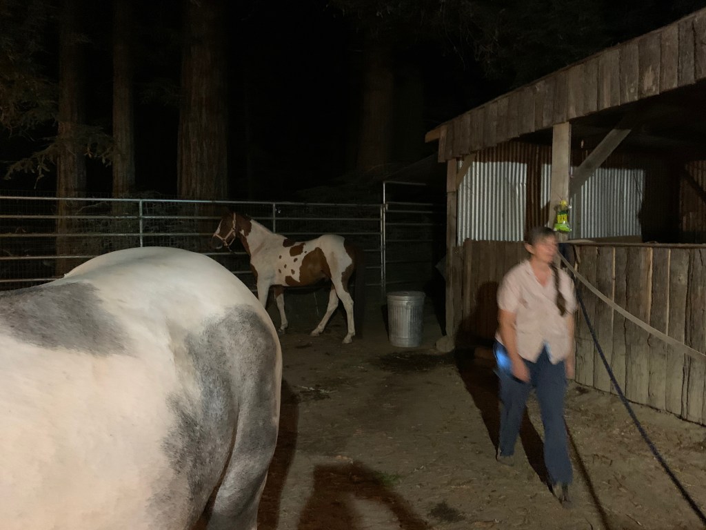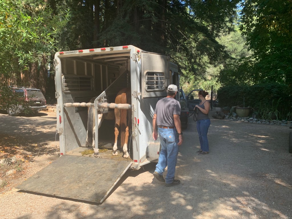 The horses were taken to the Santa Cruz Horsemen’s Association Showgrounds in Felton. Rebekah shared a story that they took off Shasta’s Halter, but it took her and her daughter over 15 minutes to get it back on. She was wondering why he had a halter and lead rope already on him at our home, and she was thankful. So, she duct taped his halter buckle and wrote on it with a sharpie not to remove. That’s Shasta for you!