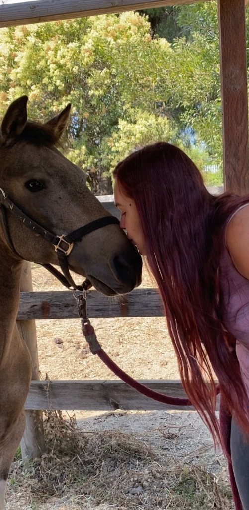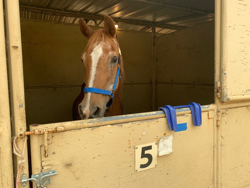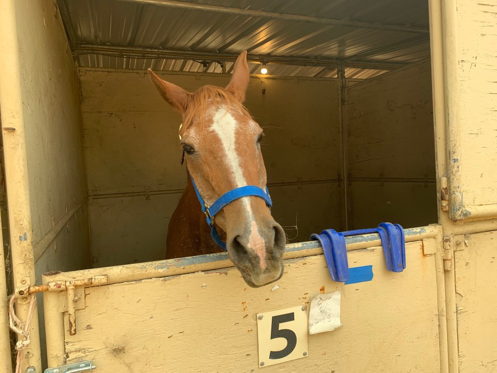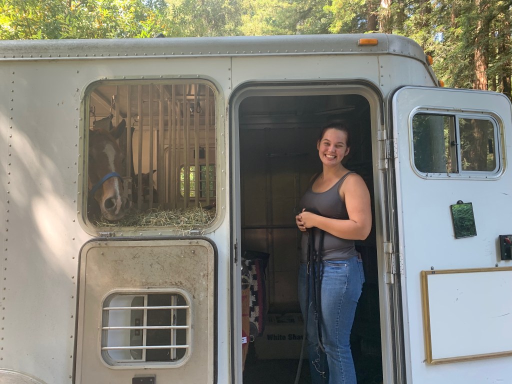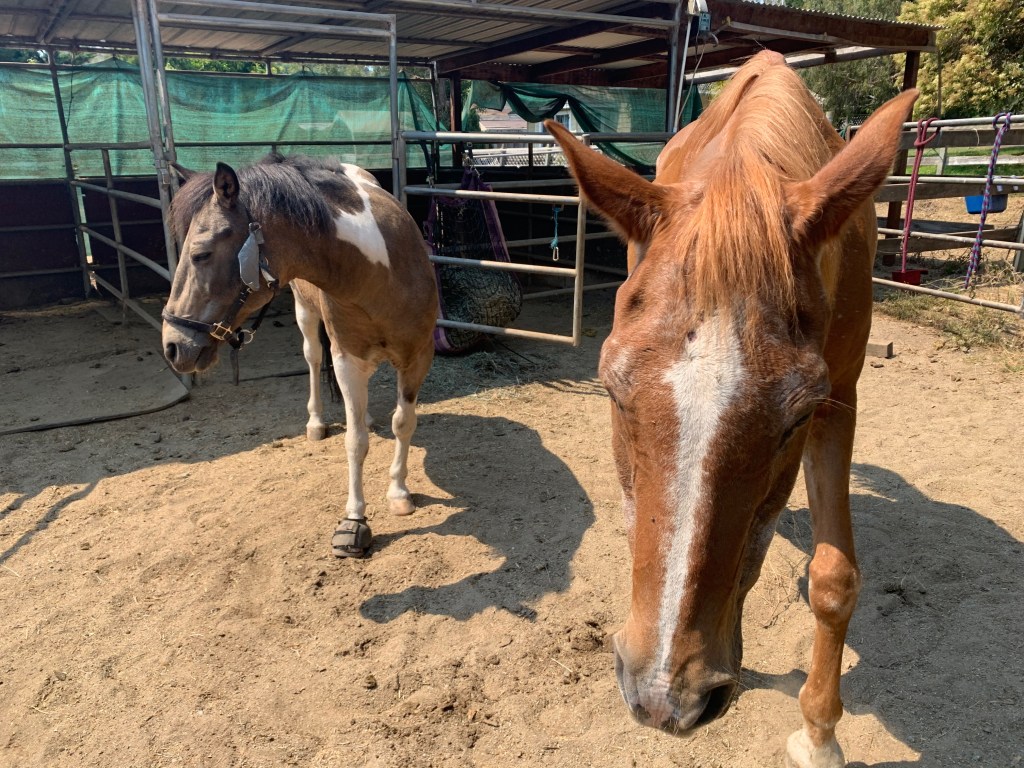 The horses were taken to the Santa Cruz Horsemen’s Association Showgrounds in Felton. Rebekah shared a story that they took off Shasta’s Halter, but it took her and her daughter over 15 minutes to get it back on. She was wondering why he had a halter and lead rope already on him at our home, and she was thankful. So, she duct taped his halter buckle and wrote on it with a sharpie not to remove. That’s Shasta for you!