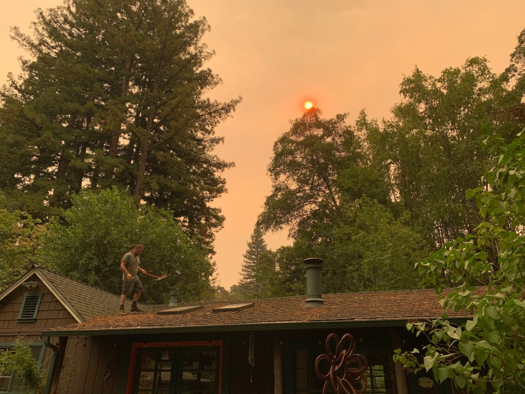 Now, I could focus on our farm and our animals. I called into work and took the day off. I noticed that many people were voluntarily evacuating, including all our neighbors. We had decided we would not leave unless under mandatory evacuations. To feel productive and less panicked, Mike swept all the redwood debris off the roof.