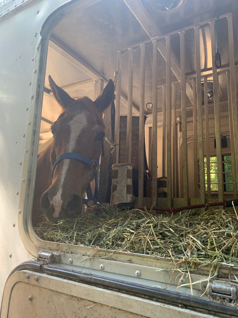 The horses landed in the perfect spot. Faith texted me photos of Shasta’s first groom session. She felt comfortable taking off his halter.