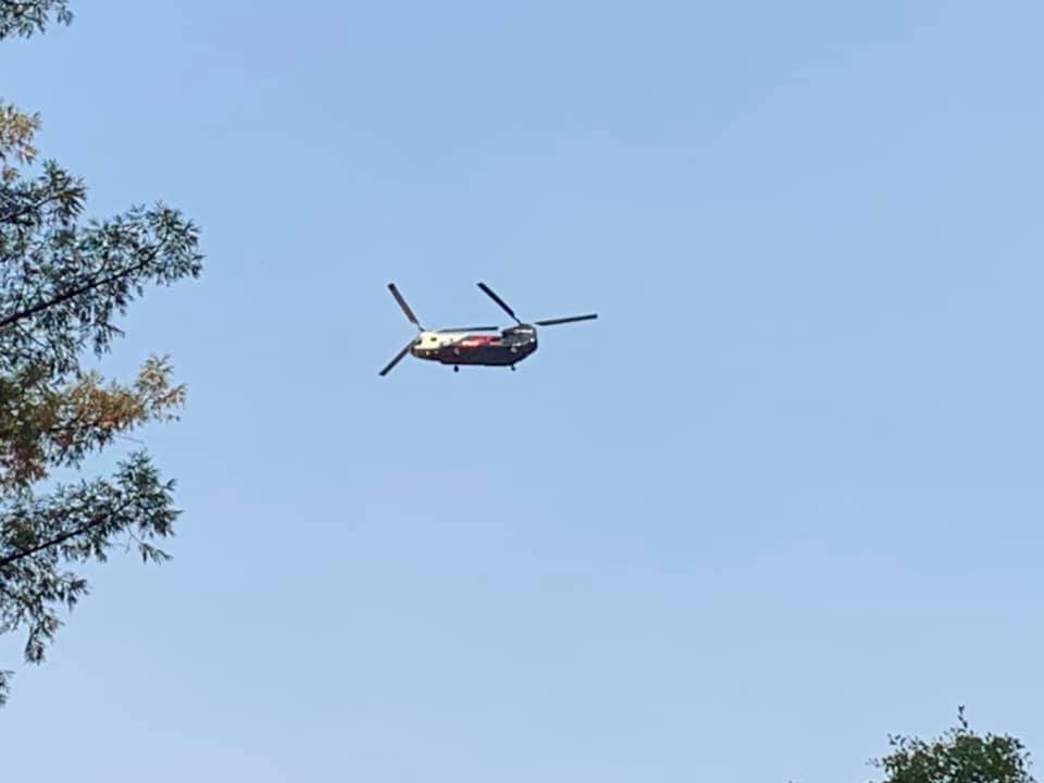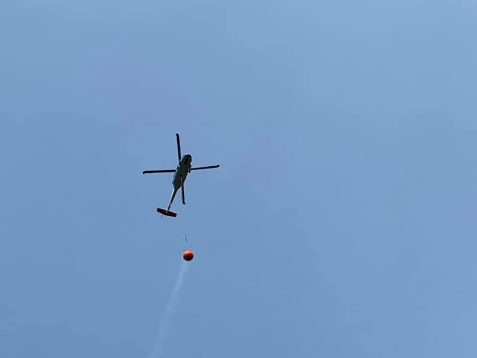 It was confusing at first to determine how many fires had started from the lightening storms and now knowing – they merged to become a massive blaze. The helicopters started flying over our house on Tuesday. For me, it’s always exciting to watch and hear them, see how low they fly with the water bucket trailing behind. They filled up with water at Loch Lomond Reservoir.