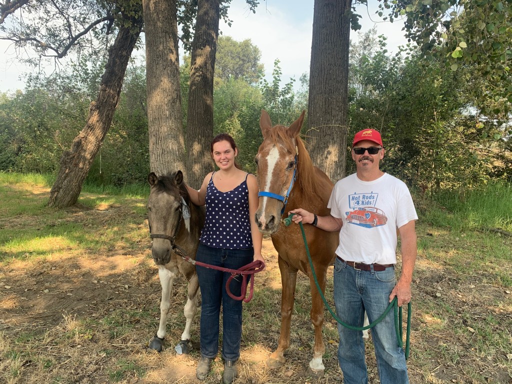 Being the amazing group of people they are, Jessica already contacted her resources and found a foster family for the horses with the Walls family in Soquel. I arrived at the Fairgrounds expecting the worst, but instead, Shasta and Snickers were out on lead ropes eating grass. I thought these two individuals with the horses were volunteers. I had no idea. I went over and started talking to them, and they said they were taking the horses home. I broke down, emotionally drained, and another wave of relief swept over me.