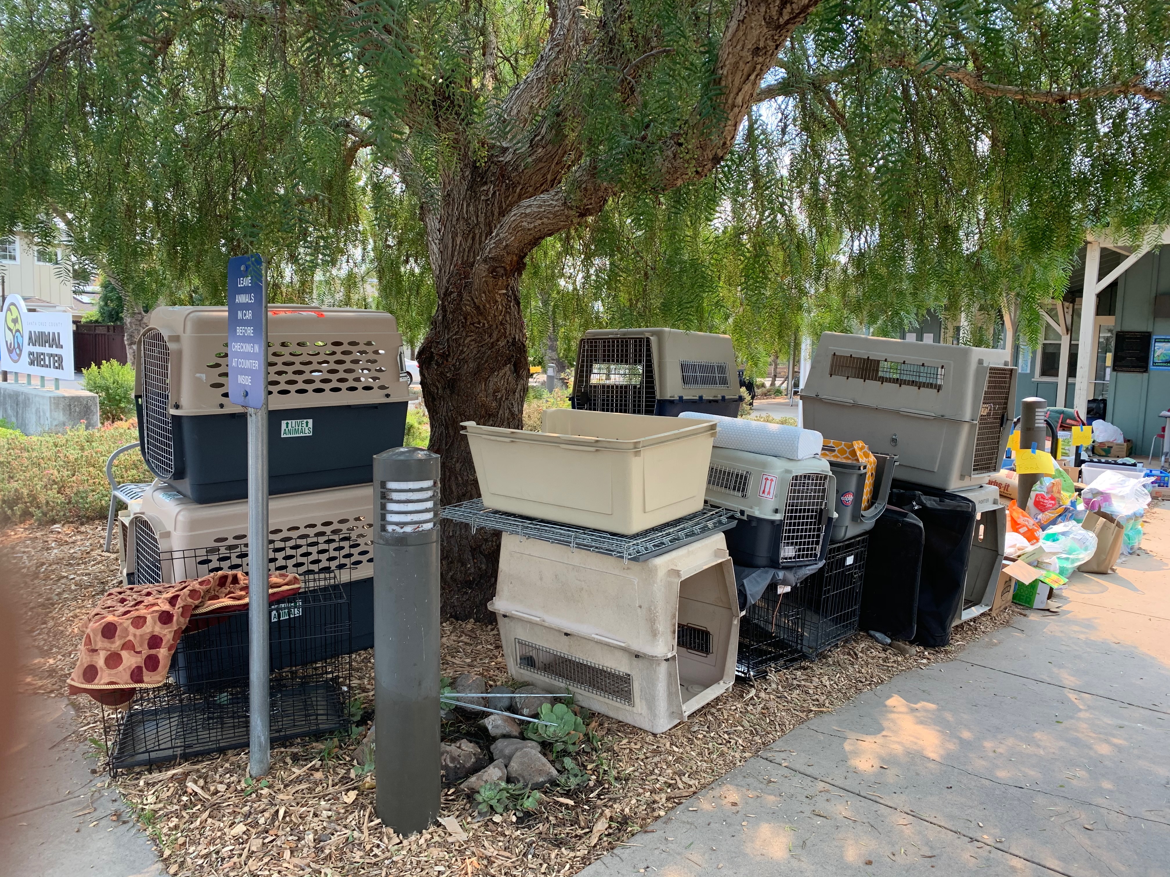 One weekends, I’d drive over to Soquel to visit the horses, bring needed food items and medications. On one trip, I stopped at the 7th Ave. Santa Cruz County Animal Shelter to drop off some dog crates and cat liter boxes we had collected from the City of Santa Clara clean out. I was amazed at the amount of donations of animal items, food, cages, etc. for fire evacuees. So generous!