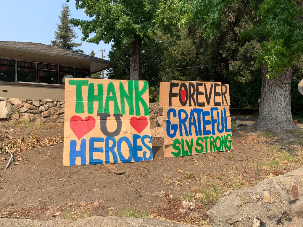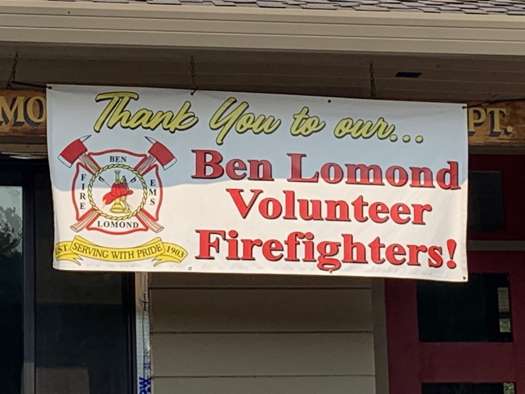 The Ben Lomond Volunteer Fire Department saved our town. They worked non-stop with local agencies, volunteers, tree experts, etc. to hold the line and make sure the fire did not cross Highway 9. The community supports the BLVFD with signs, thank-yous, and purchases of merchandise for sale at the fire department.