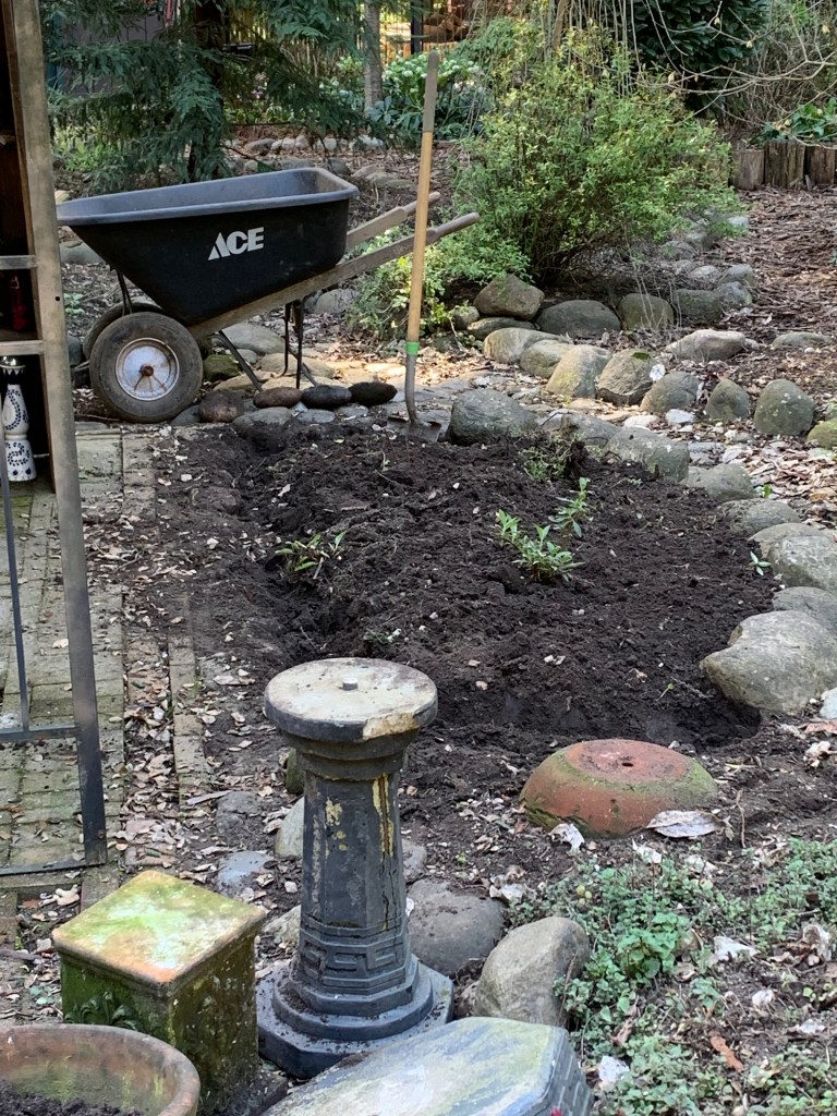 We are still plugging away on fixing planter beds, adding wire, and trimming. Our goal is to get a big load of gorilla fur to cover the soil and make everything look pretty. Step by step.