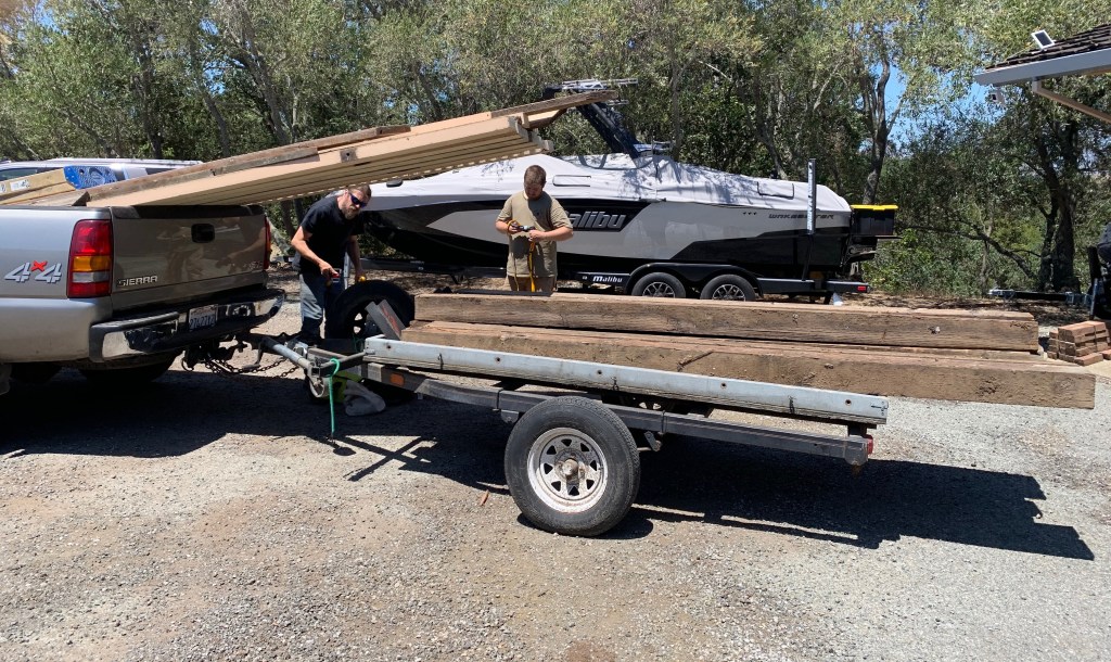 The guys finished up, loaded the truck, and I asked if they could get the pressure treated 6x6x10 beams used as stairs. It took them no time at all to get them out using the right tool. There were two more sets of stairs with smaller beams, but everyone was tired and ready to go.