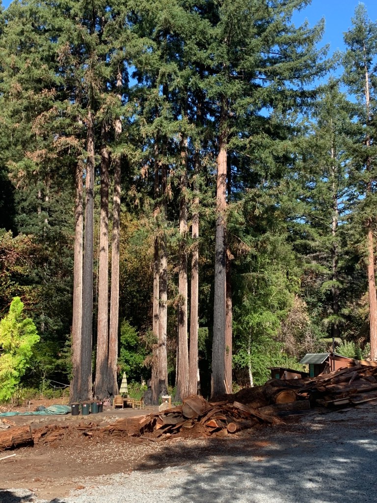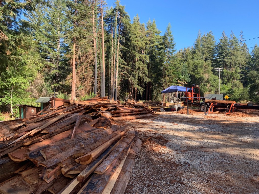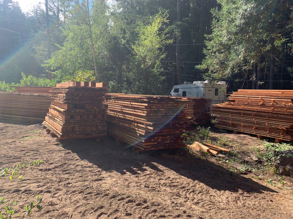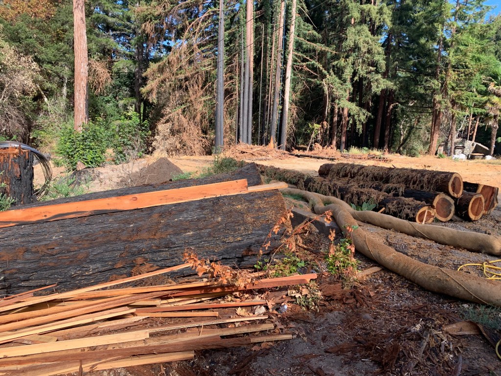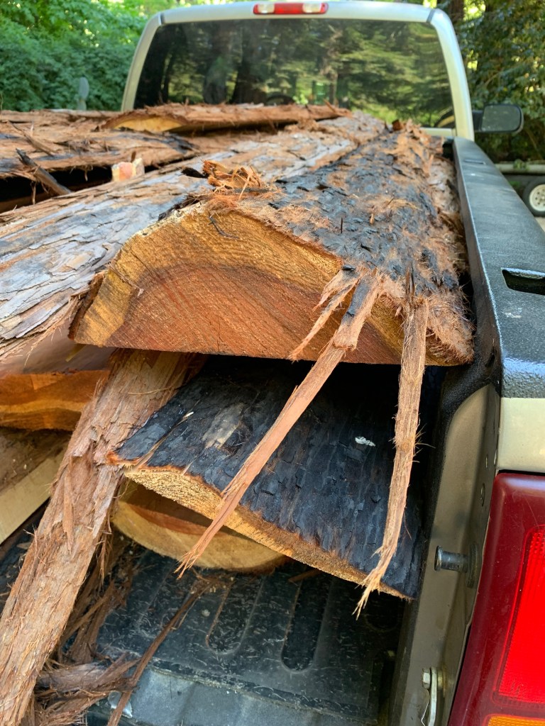 Linda and Tom kindly let us salvage redwood bark mill scraps from 31 burnt redwood trees. They are rebuilding their house which was destroyed by the CZU fire in August 2020 so the trees had to come down, and they had all the trees milled.