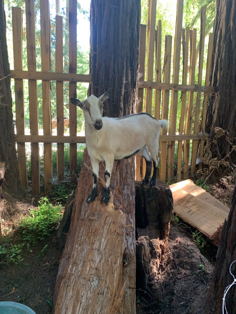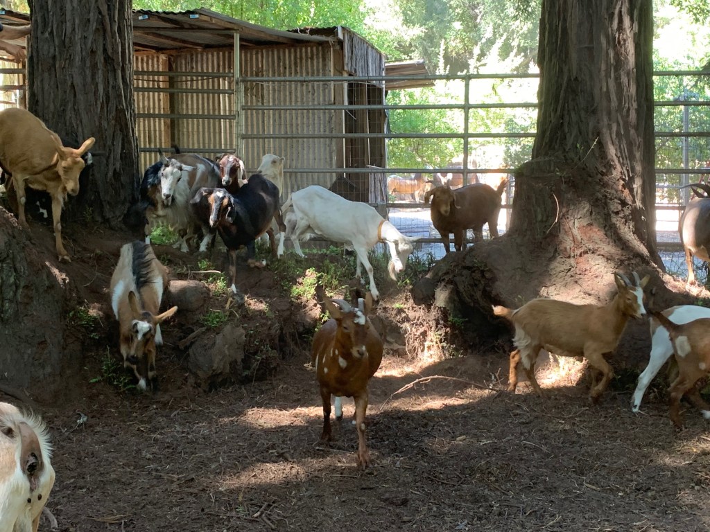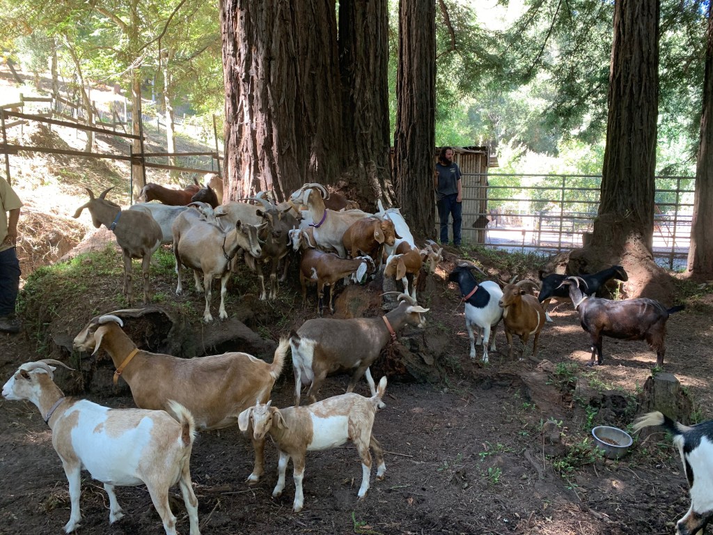 Hilarious and exhausting trying to get the goats back into the trailer. At least the redwood grove was a good holding zone except for the escape artists. It all worked out.