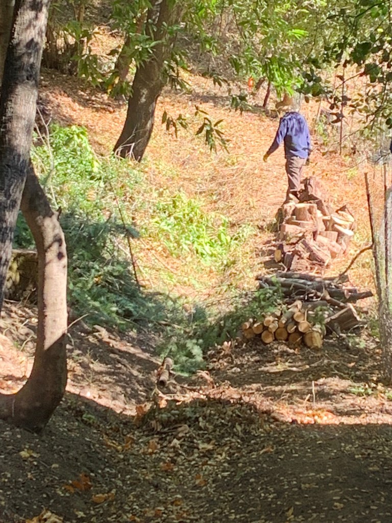 We’ve been working weekend by weekend to cut trees, move brush into piles, and rake the matted ground down to dirt. We are very motivated to clear the hillside for fire control and to put in a horse trail. The hillside has not been maintained, and it has taken us 17 years to focus on this specific area, our outer-most zone. We have had oaks trimmed, but never removed the poison oak, berries, and scotch broom. It is so nice to see our giant oaks. We plan to hire a tree company to come in this year to thin the huge oak limbs.