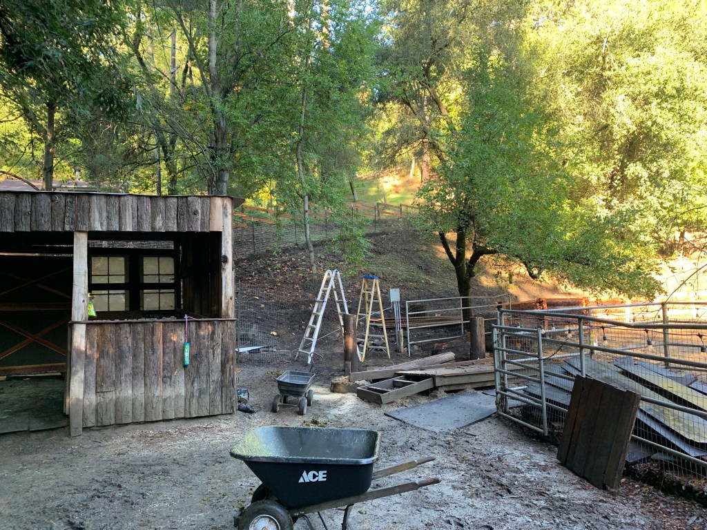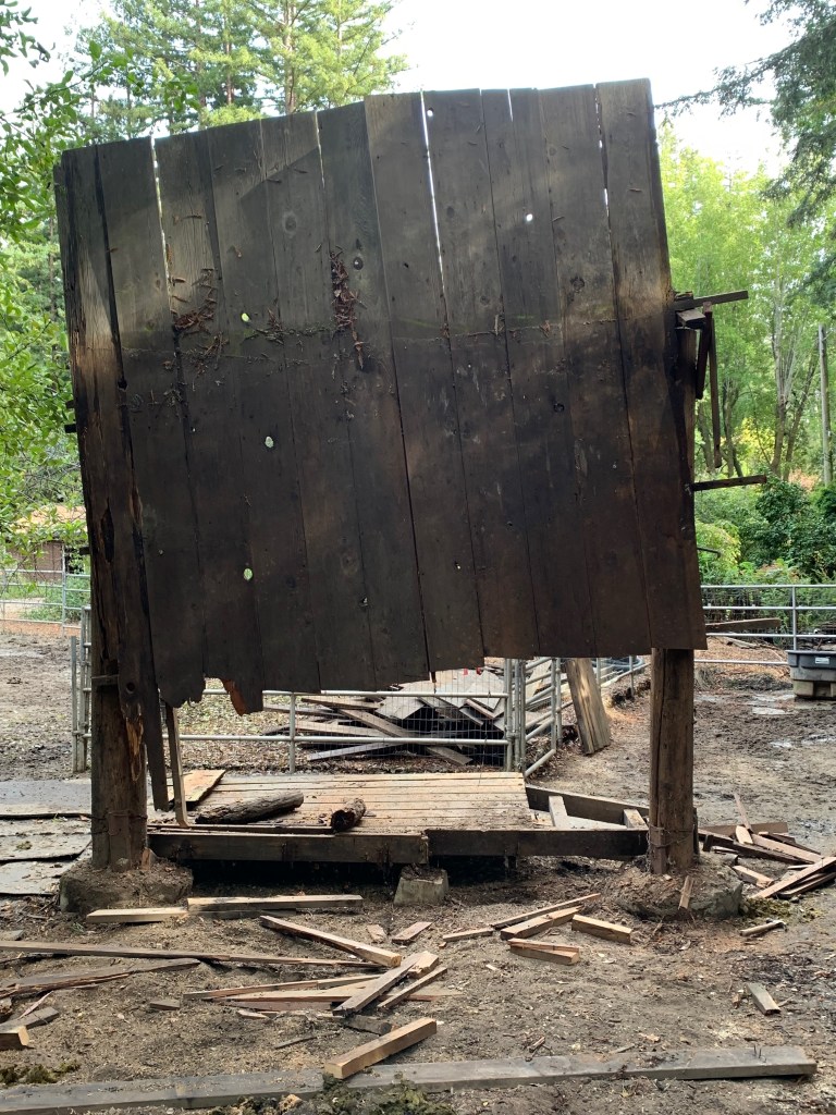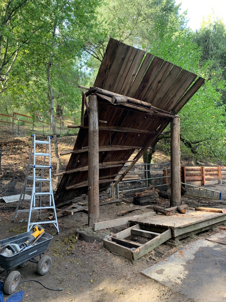 In order to get the roof down, I carefully and nervously chainsawed each 4×4 in the back. That brought the roof down on one side.