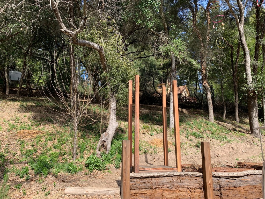 The new arbor for our second bee hive is almost done. Just have to add the plastic roofing panel on top to protect the hive. Now, we have to build another arbor higher up the hill for a third hive.