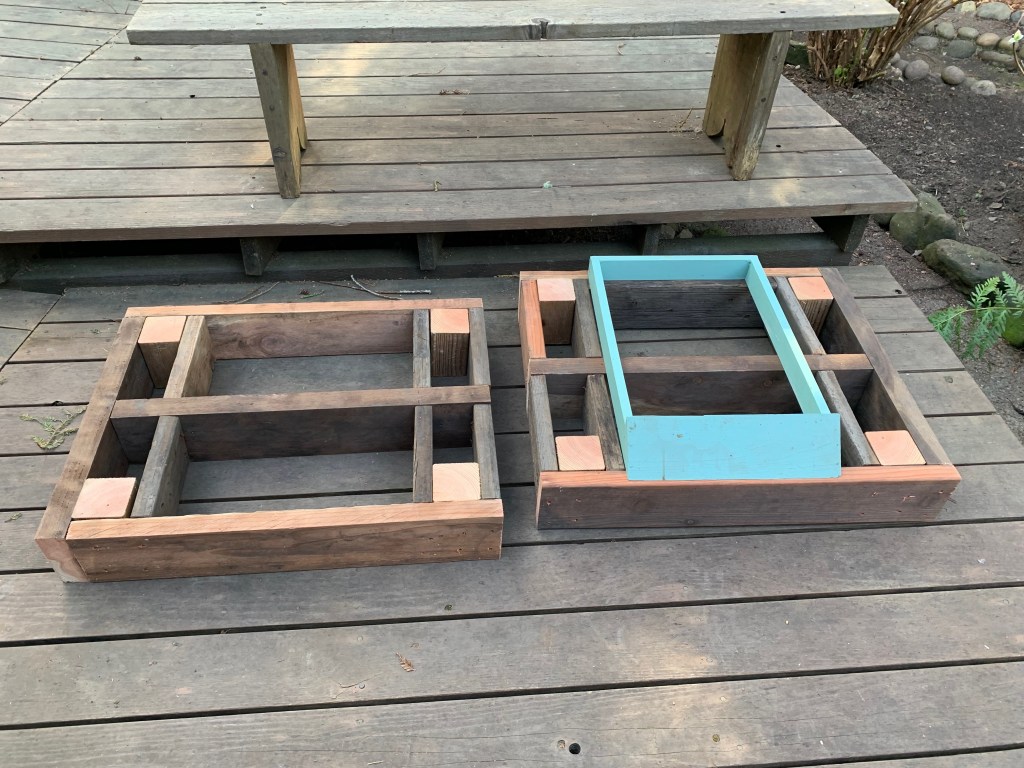The two stands for the hives are also built, just have to add the metal legs and ant-proof mote made from a plastic pipe cap. Coming along for when I get the two nucs in late April.
