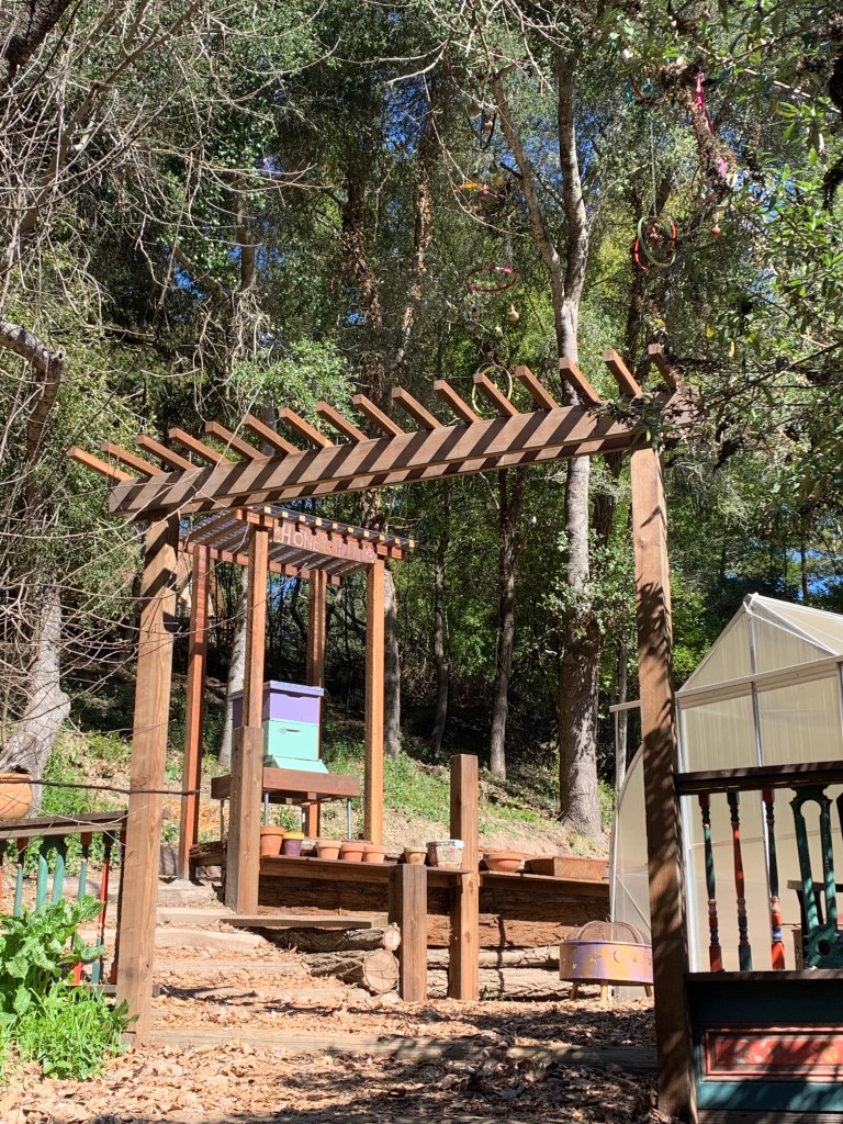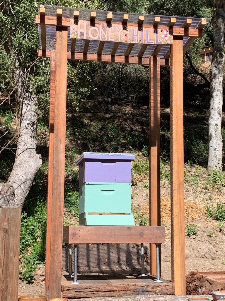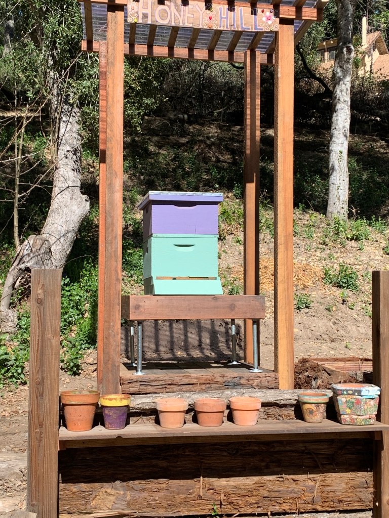 Today I finished building the new bee arbor by adding the corrugated roofing panels. I also added metal legs to the bee stand and prepped the hive components. I’ll be planting herbs in the pots for the bees too.