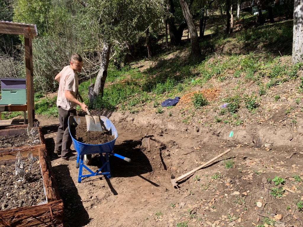 I took a pick and hacked out the soil while farmhand Will Burke shoveled and moved it out. Fortunately it had just showered so the soil was soft enough to get this done. Perfect timing.