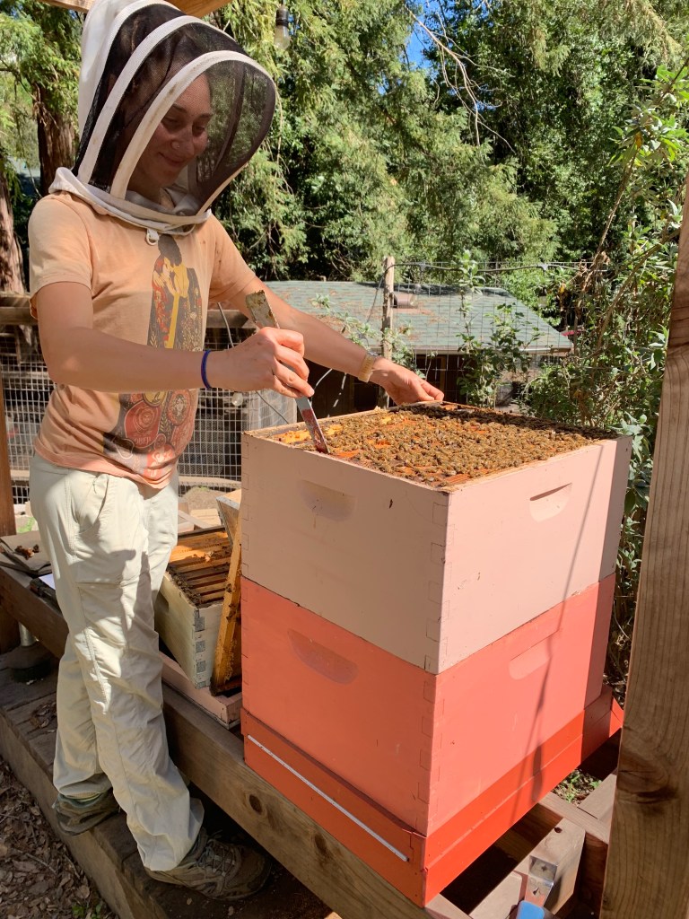 As part of my 3-day birthday vacation, I scheduled Emily Bandor from Santa Cruz Bee Company for a consultation on my big hive. I’ve had this hive for about 8+ years, and the bee genetics are outstanding. Low mite counts, super friendly, and great at re-queening.