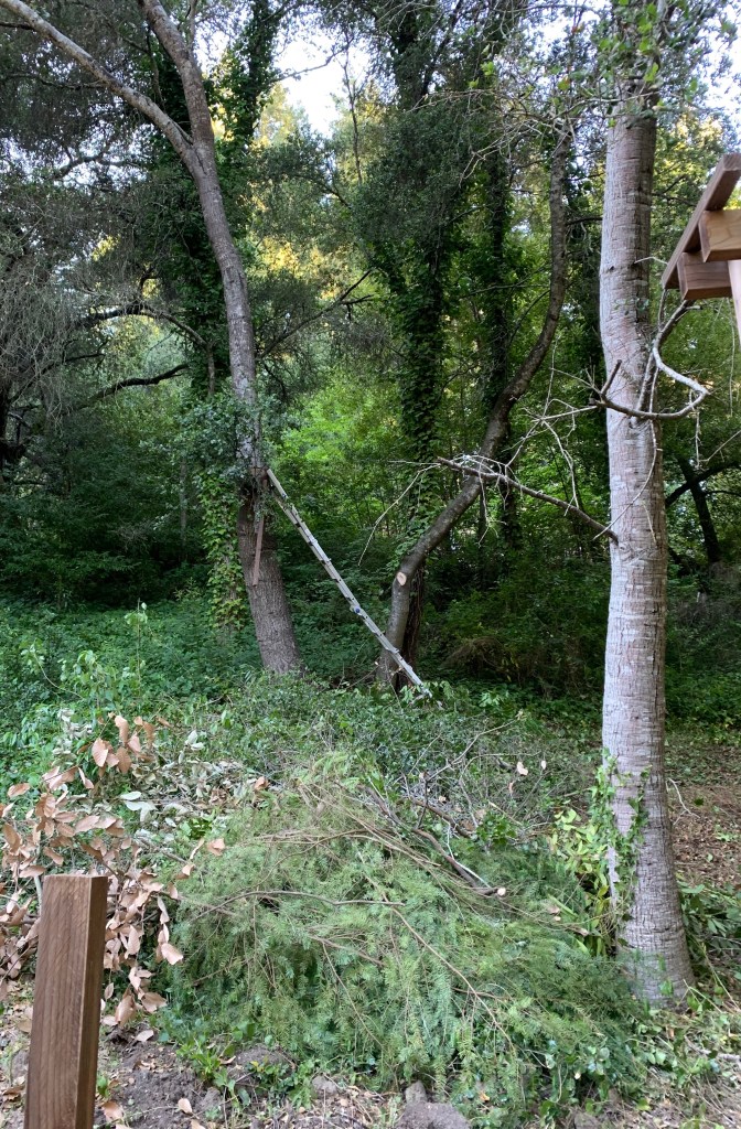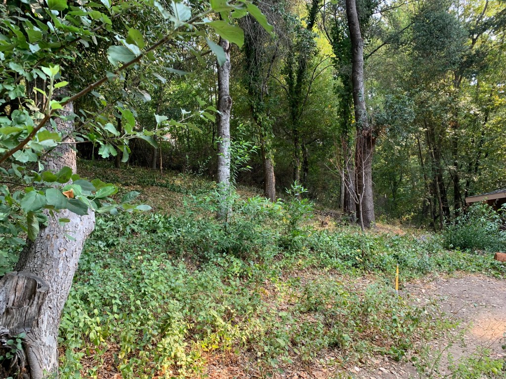 This area has been a work in progress. First oak trees were removed and then we had fire clearing with goats. Next was tractor work to put in a trail and smooth the area. The “fun” part is designing the space. It’s amazing to look back and see the progress over time. When I’m tired from the day’s labor, seeing old posts and photos make it all worth it.