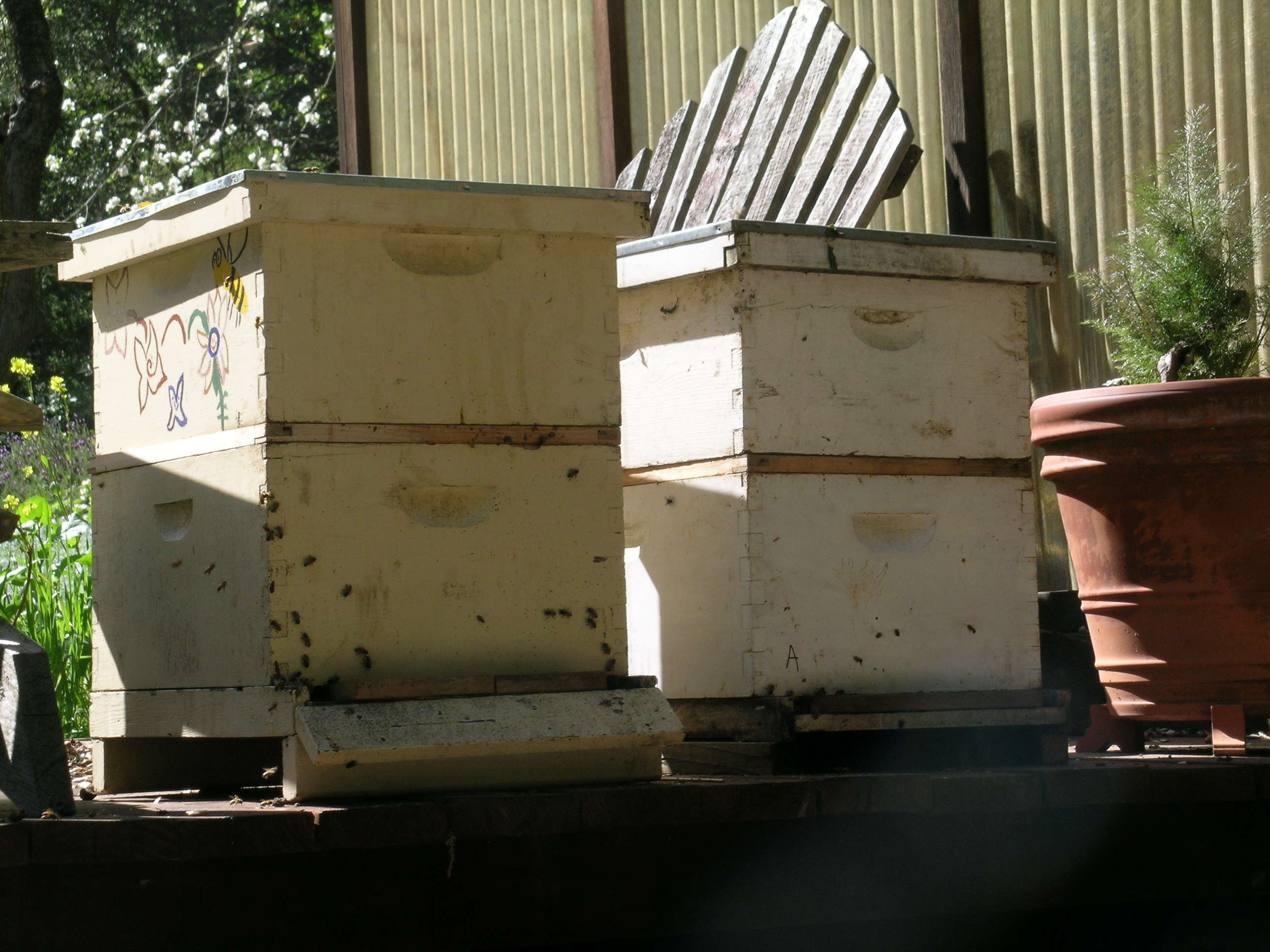 New hives on deck waiting for their new home at Bee Haven. April 4, 2012. Queens released.