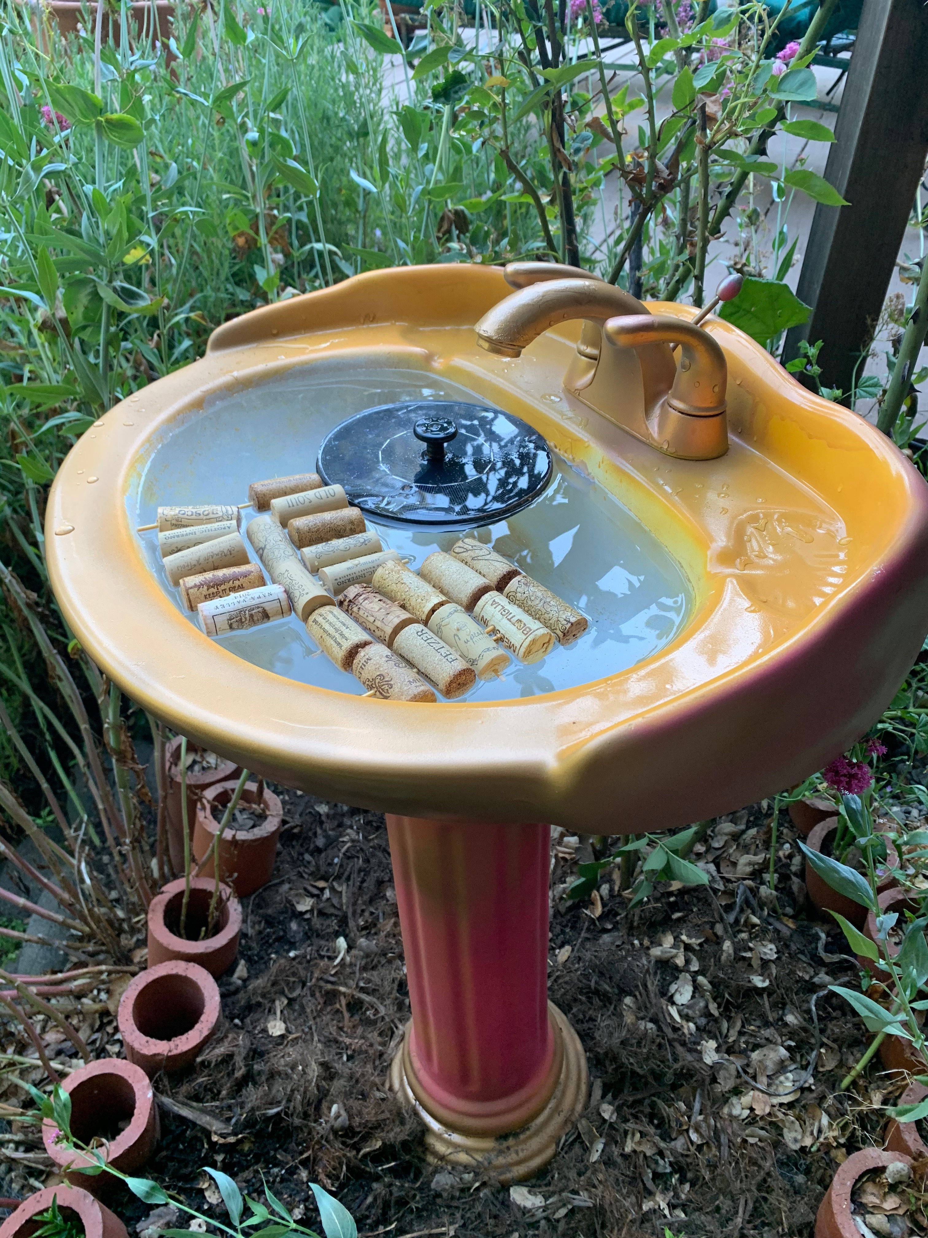 Bee Fountain with wine cork rafts