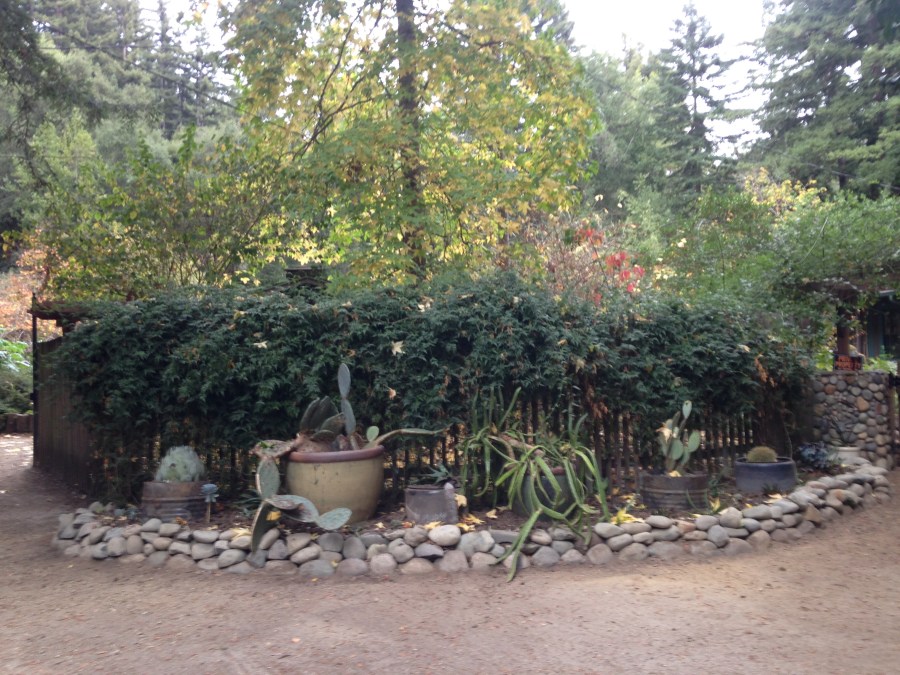 Front Entrance Redwood Bark Fence