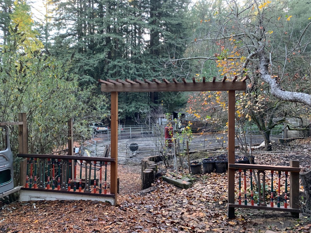 The front entrance trellis and farm fence in front of the Greenhouse were finished in December, 2020.