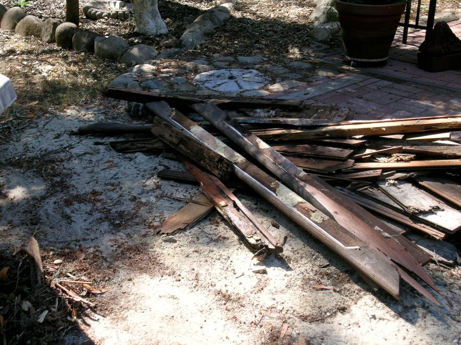 rotten wood from around the hot tub