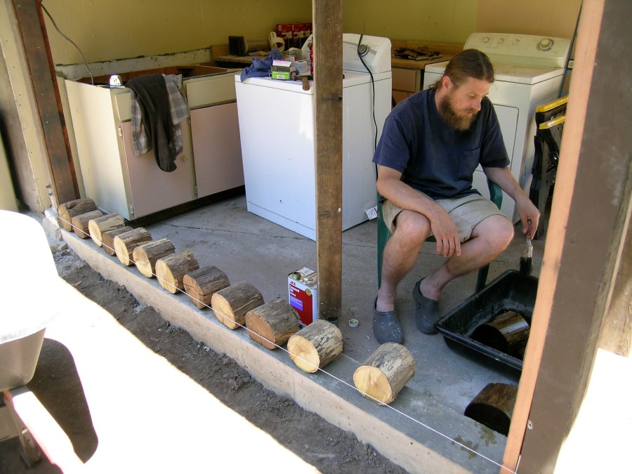 Coating each log with linseed oil for added protection.